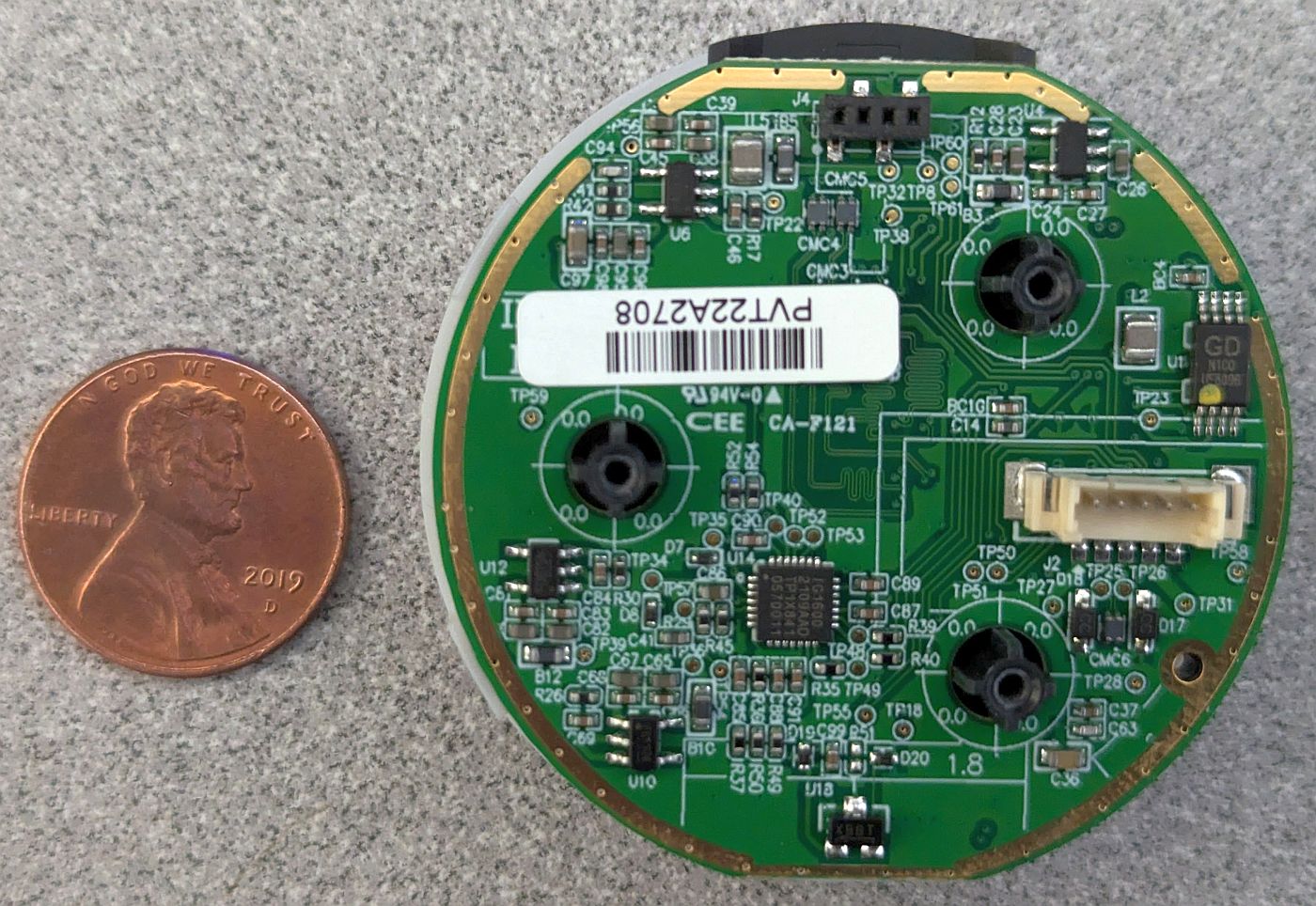 Objects of explicit notice embrace the lens meeting at heart (with the aforementioned 8 Mpixel Sony CMOS picture sensor unseen behind it), the system processor to its left (a Sunplus Innovation Expertise SPCA2680A, not discovered on the producer’s web site, though notice the presumably associated SPCA2688), and the surprisingly giant MEMS mic to the lens’s decrease proper. Together with, after all, the exercise LED under the lens and the six-LED ring across the perimeter.