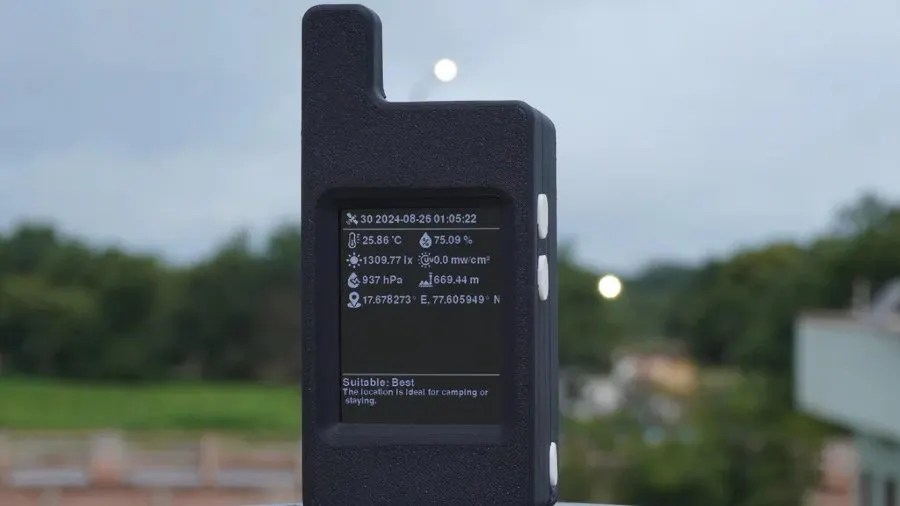The hand-held is designed to warn whether or not staying outdoor is protected, based mostly on native sensors and distant climate information. (📷: Mukesh Sanhkla)