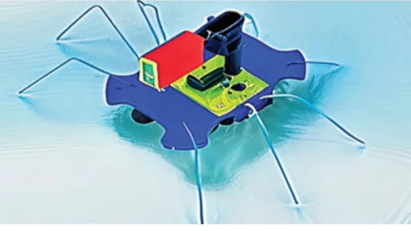 The aquatic robotic was designed to imitate the looks and capabilities of a water strider. The light-weight polycarbonate plastic physique offers it buoyancy. It features a small DC motor for locomotion. Rotational actions of this motor are utilized to propel it alongside the floor of the water with out making use of pressure on to the water itself.
